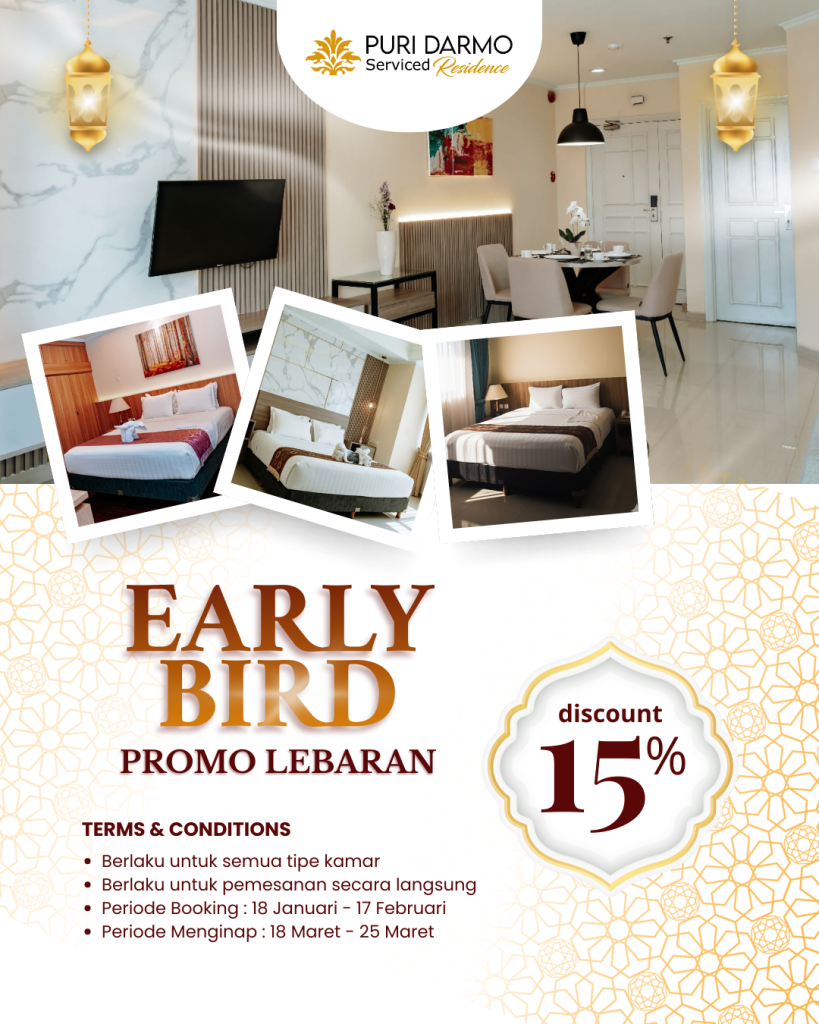 Idul Fitri merupakan momen istimewa untuk berkumpul bersama keluarga dan menikmati waktu beristirahat setelah menjalani rangkaian ibadah. Untuk menyambut momen penuh kebersamaan ini, Puri Darmo Serviced Residence menghadirkan pengalaman menginap yang nyaman dan tenang bagi para tamu yang ingin menikmati libur Idul Fitri dengan suasana yang lebih berkesan.